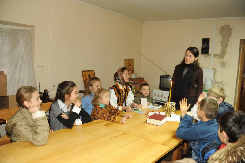 Діти збираються і юрбляться навколо своїх старших наставників, активно дискутують і висловлюють свої дитячі думки на запитання вчителів, пізнають християнських засади, вчаться вірі надії, любові.